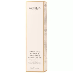 Aurelia Aromatic Repair & Brighten Hand Cream er en håndcreme, som er specielt udviklet til at reducere tegn på pigmentering omkring hænderne. Den fugter og nærer hænderne, og giver dem et yngre udseende. Vores hænder er ofte et af de første steder, som begynder at vise ældningstegn, så det er vigtigt at pleje dem. Mange får mørke pletter og plamager på hænderne, og denne håndcreme er med et særligt kompleks, som reducerer synligheden af disse mørke pletter – både i størrelse og farve. På grund af den meget nærende formel er den desuden velegnet at bruge til tørre albuer, hæle og knæ. Pas på dine hænder med Aurelia Aromatic Repair & Brighten Hand Cream.