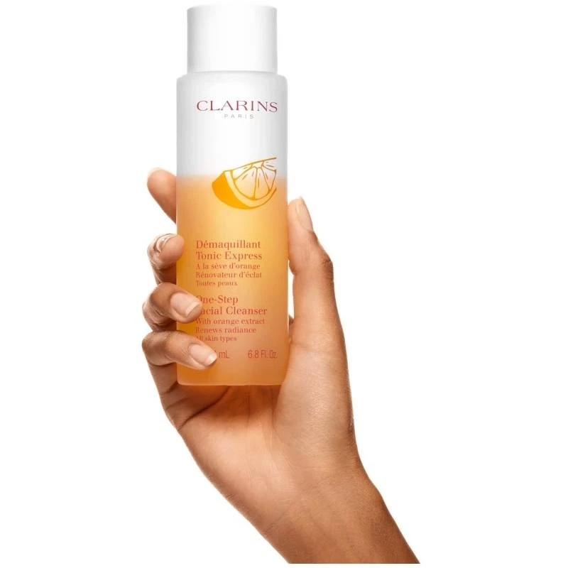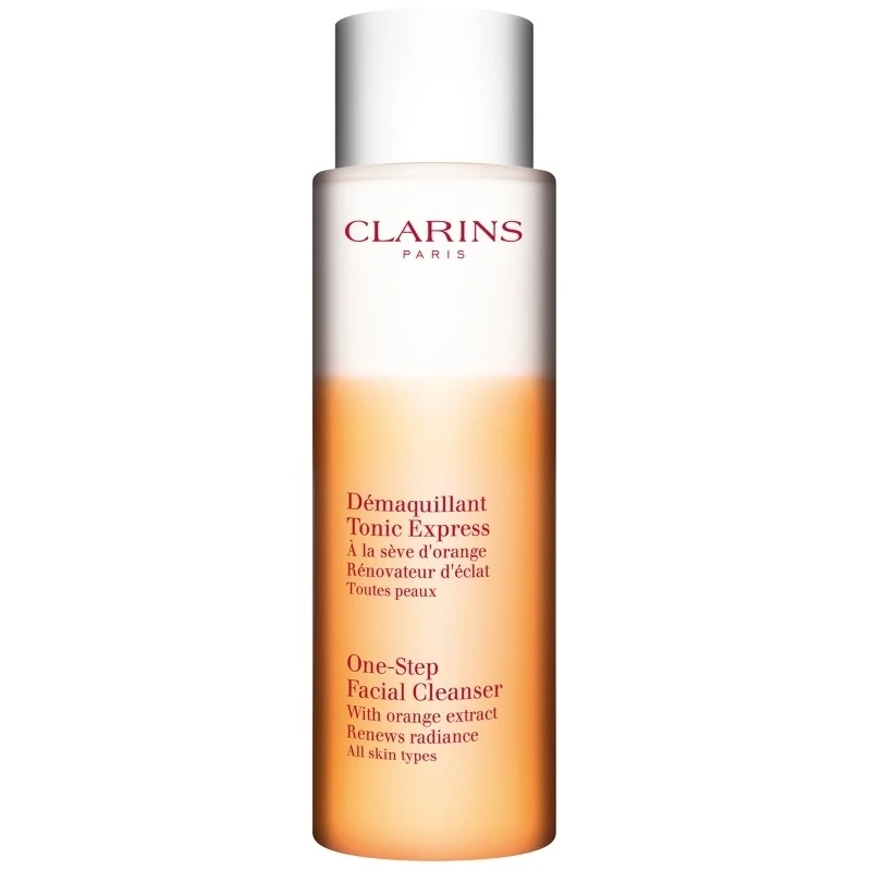 Clarins One-Step Facial Cleanser For All Skin Types indeholder ekstrakt af monringa-frø, som neutraliserer urenheder, renser huden og genskaber hudens naturlige udstråling. Desuden indeholder den appelsinekstrakt, der opfrisker, stimulerer og revitaliserer huden.