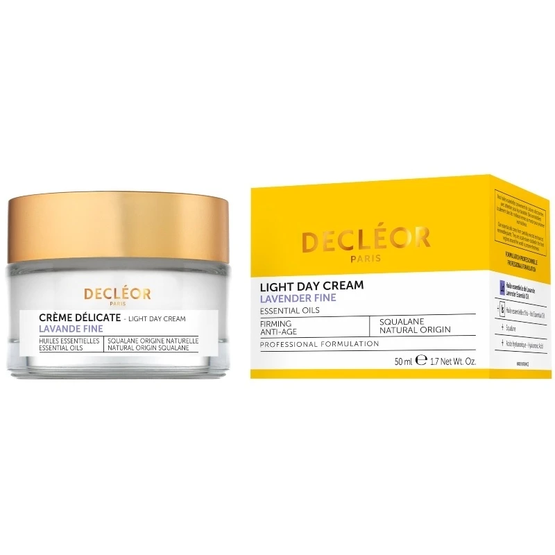 Decléor Lavender Fine Light Day Cream er en lækker dagcreme, som er udviklet til en moden hud, og som anbefales til kvinder i alderen 40+. Den modvirker ældningstegn, og øger hudens fasthed og elasticitet, så huden kommer til at se mere spændstig ud. Den giver en intens glød, og arbejder på at mindske fine linjer og rynker. Cremen har en skøn duft, som er af 100% naturlig oprindelse, og den stammer fra ægte lavendelolie, hvilket bidrager til en fantastisk sindsro. Giv din hud en masse forkælelse med Decléor Lavender Fine Light Day Cream.