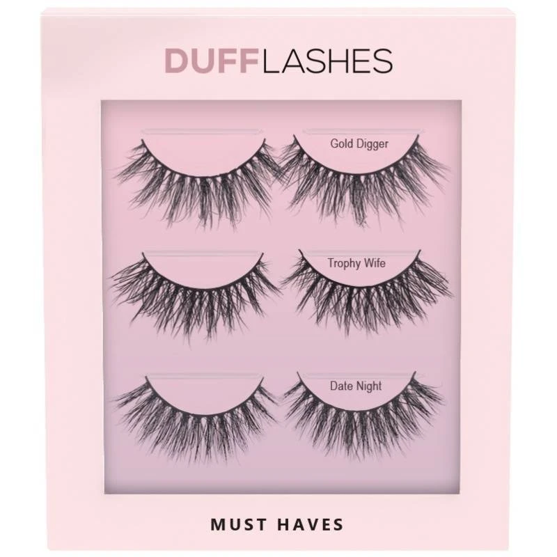 DUFFBEAUTY Lashes Must Have Kit er en sampak, som indeholder 3 sæt øjenvipper i højeste kvalitet. Vipperne giver hver især et forskelligt udtryk til ens look, og derved får man med denne pakke et sæt vipper til enhver lejlighed.