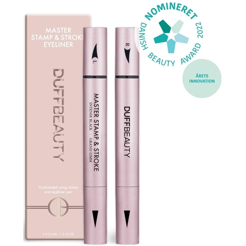 DUFFBEAUTY Master Stamp And Stroke Eyeliner Extreme Black Grand 12mm er en super smart eyeliner, som gør det muligt at opnå et fuldkommen perfekt resultat med en knivskarp og ensartet vinge på begge øjne.