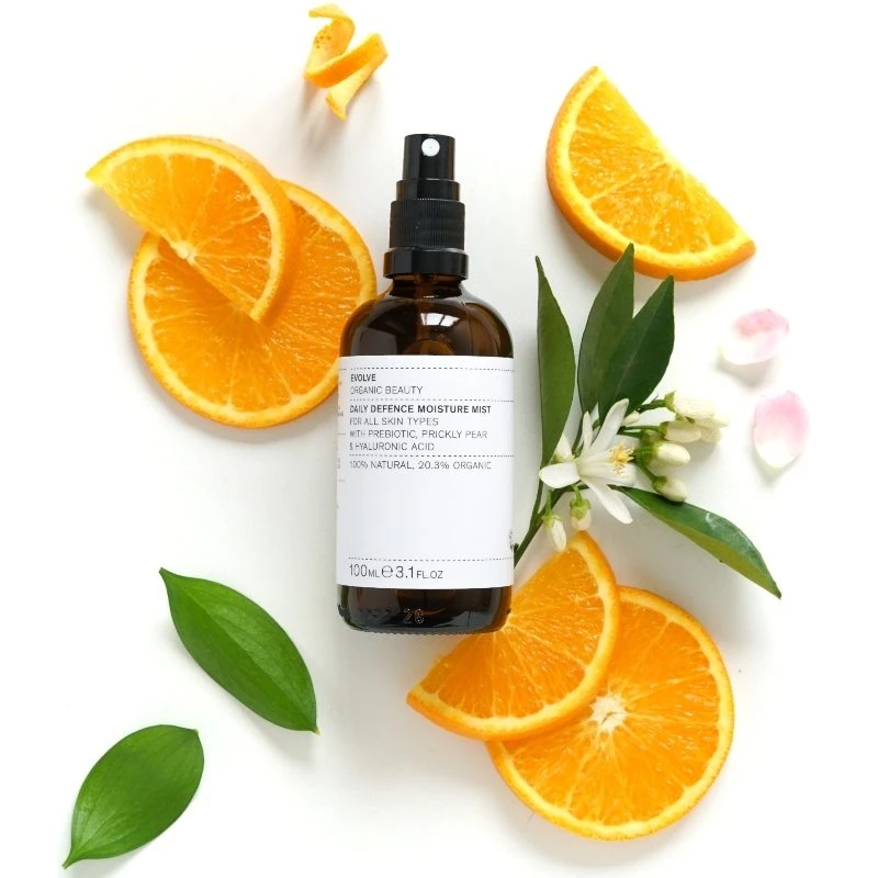 Forkæl din hud og dine sanser med Evolve Daily Defence Moisture Mist with Prebiotic, som har en skøn duft med beroligende noter af appelsin og rose.