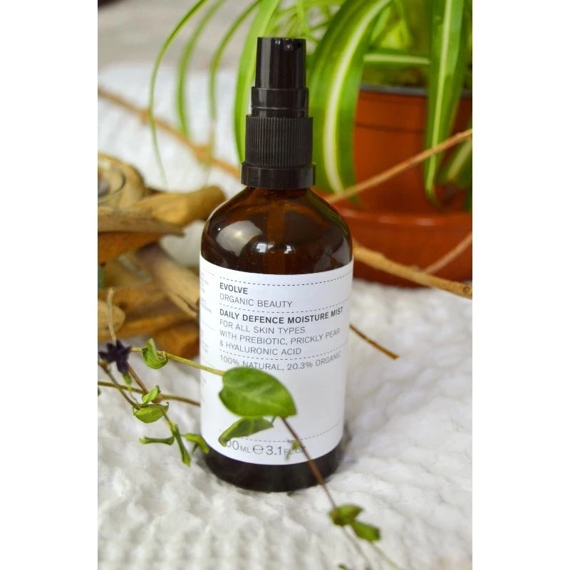 Evolve Daily Defence Moisture Mist with Prebiotic er en beskyttende ansigtsmist der, med hjælpe fra mexicansk økologisk kaktuseliksir, er med til at berolige irriteret hud, samt opstramme og booste fugtniveauet.