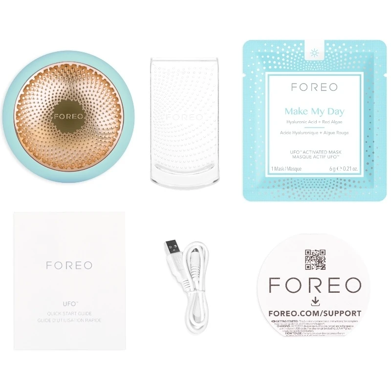 Foreo UFO 2 udsender hurtig opvarmende T-Sonic-Pulseringer samt LED-lys, som kan blive op til 45 grader, hvilket er med til at øge ingrediensoptagelsen ved at udvide porerne og få ansigtsmusklerne til at slappe af.