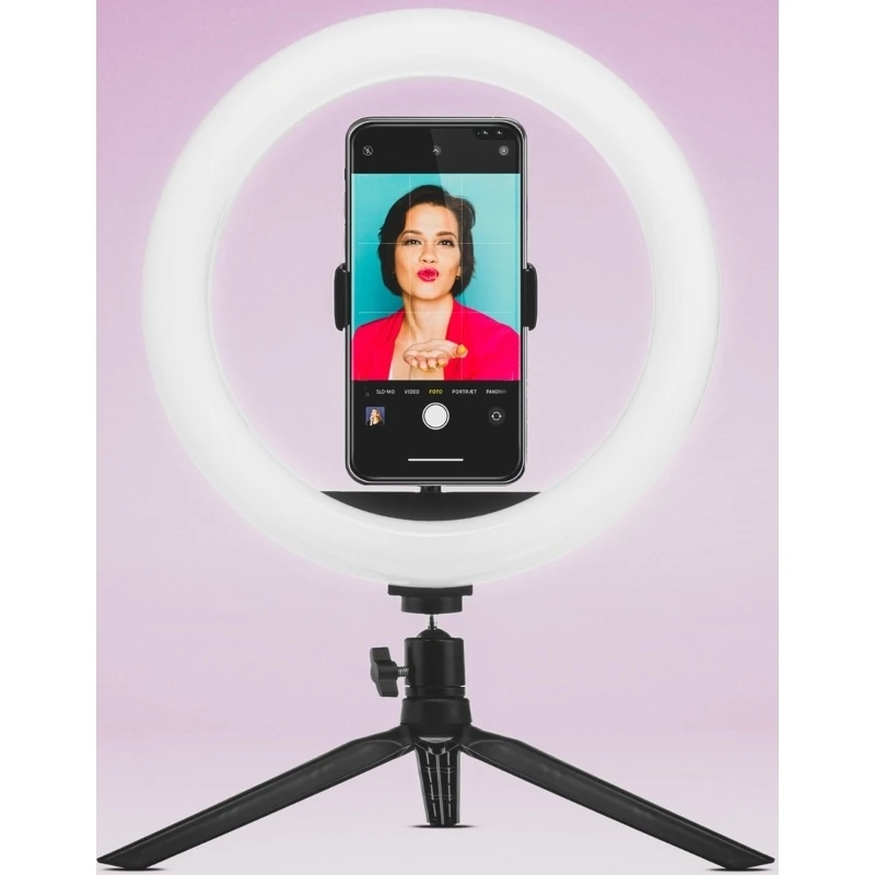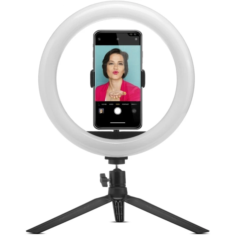 Denne moderne ring light fra Gillian Jones har tre ben, som gør det muligt at stille på bordet, og har desuden en holder til din telefon. Med den medfølgende fjernbetjening har du mulighed for at skrue op og ned for lyset, alt efter behov.