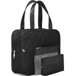 Gillian Jones Studio 3 Set – Black Quilt er en super fin sampak med 3 toilettasker. Den indeholder en stor toilettaske, som indeholder to net-lommer samt et lynlås-rum, og kan rumme alt hvad man har brug for på bl.a. rejser. Alt fra hårprodukter, toiletsager, makeup osv. kan være i denne rummelige taske. Derudover medfølger der også 2 mindre toiletpunge, til opbevaring af mindre genstande. Med disse 3 forskellige størrelser har man opbevaring, som passer til enhver lejlighed.