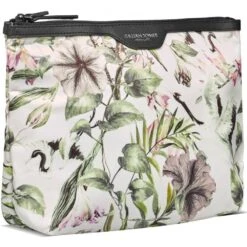Gillian Jones Urban Bag Secret Garden er en feminin kosmetiktaske, som har en perfekt størrelse til at rumme alle ens produkter. Indeni tasken er der ét stort rum, hvori der er to åbne lommer, samt en stor med lynlås. Disse rum gør det let at organiserer sine ting i tasken, og er ideel til opbevaring af mindre genstande, så de ikke falder ned på bunden. Gillian Jones Urban Bag Secret Garden er hvid med print af hibiscus blomsten, hvor man bag bladene kan se en flyvende traner.