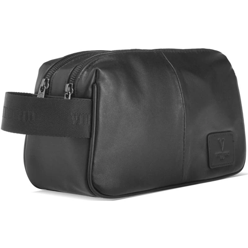 Gillian Jones Vittorio Genuine Leather er en utrolig lækker toilettaske, som kan bruges af både kvinder og mænd. Den er lavet i et tidsløst og moderne design i ægte genanvendeligt læder. Tasken indeholder to store rum, som er er opdelt, samt en udvendig lynlås-lomme i det ene af rummene, samt på ydersiden.