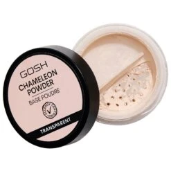 GOSH Chameleon Powder – 001 Transparent er en løs pudder, som er perfekt til at sætte din foundation eller concealer med. Pudderen består af en transparent formel, som tilpasser sig til alle hudtoner og -nuancer, som var det en kamæleon.