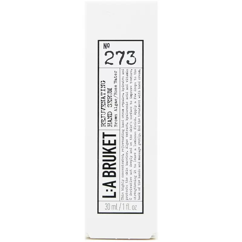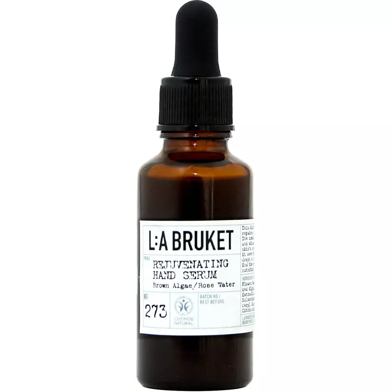 L:A Bruket 273 Rejuvenating Hand Serum er et fantastisk serum, som forynger, fugter og beskytter dine hænder. Dette serum er udviklet med en effektiv formel med 99,9% naturlige ingredienser, som virker både i overfladen og i dybden, hvor de styrker og genopbygger huden og dens forsvar, samt modvirker og beskytter mod ældningstegn.