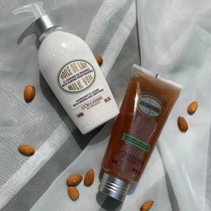 L’Occitane Almond Moisturizing & Smoothing Milk Veil er en ultralet og hurtigabsorberende bodylotion, som plejer huden i dybden. Den velduftende formel er beriget med mandelolie, mælk og proteiner med silicium, som hjælper med at nære, blødgør og tone huden.