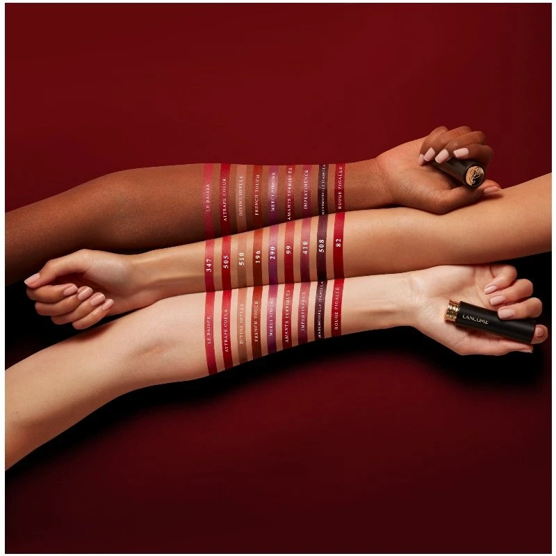 Få matte og dramatiske læber med Lancôme L’Absolu Rouge Drama Matte Lipstick, og find din eller dine favoritter blandt de mange smukke nuancer.