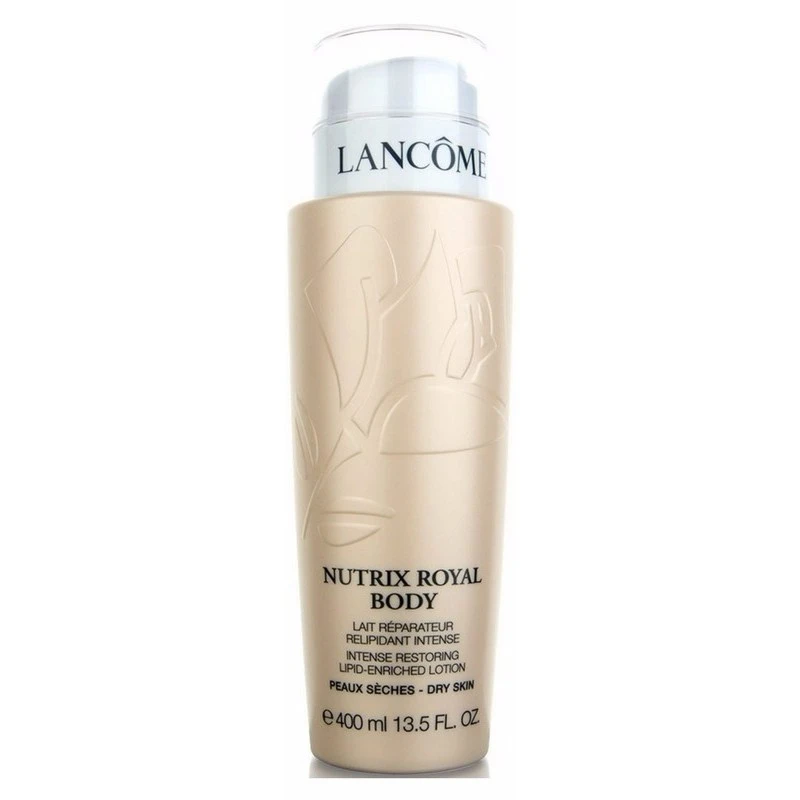 Lancôme Nutrix Royal Body Lotion er en fugtgivende bodylotion til tør hud. Denne bodylotion er ultra nærende og trænger hurtigt ind i huden, uden at huden føles fedtet eller klistret. Lancôme Nutrix Royal Body Lotion nærer og reparerer huden med de eksklusive komplekser af royal lipidéum, gelée royale og planteolier. Disse ingredienser giver en blød og behagelig hud. Foruden disse ingredienser indeholder den også hasselnødspeptider, som er med til at aktivere produktionen af lipider(fedtsyre), der beskytter huden mod udefrakommende påvirkninger. Denne bodylotion er særlig god på knæ, albuer, ben og andre meget tørre steder på kroppen. Produktet har en frisk duft, der giver følelsen af velvære.
