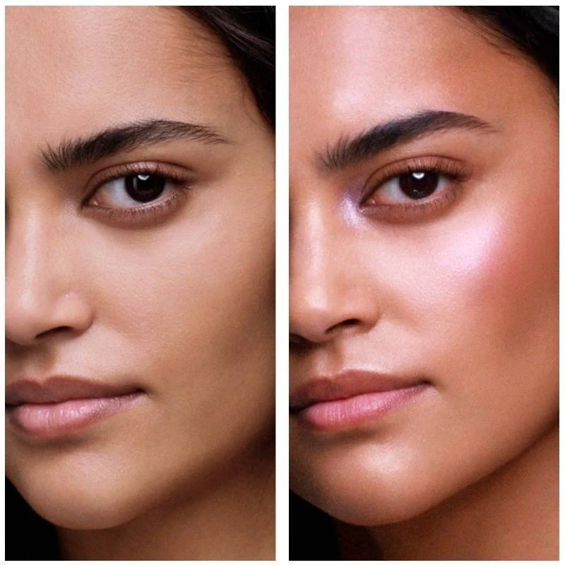 - Tip: Påfør på ansigtets højeste punkter for at highlighte. (Øverst på kindbenene, næseryggen, amorbuen, over og under øjenbrynene)