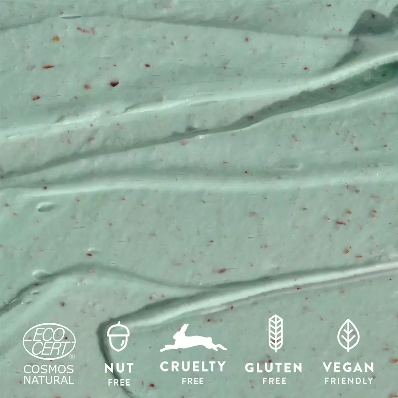 Aqua, Dicaprylyl Carbonate, Kaolin, Lactic Acid, Glycerin, Polyglyceryl-6 Stearate, Cetearyl Alcohol, Helianthus Annuus (Sunflower) Seed Oil, Perlite, Potassium Hydroxide, Hydrogenated Castor Oil, Pyrus Malus (Apple) Fruit Extract, Alchemilla Vulgaris (Lady’s Mantle) Extract, Aroma, Xanthan Gum, Polyglyceryl-6 Behenate, Benzyl Alcohol, Butyrospermum Parkii (Shea) Butter, Hippophae Rhamnoides (Sea Buckthorn) Fruit Extract, Palmitic Acid, Stearic Acid, Galium Verum (Lady’s Bedstraw/Madara) Extract, Sodium Benzoate, Ascorbyl Palmitate, Tocopherol, Potassium Sorbate, Ci 75810 (Chlorophyll), Maltodextrin, Linalool, Limonene, Benzyl Salicylate.