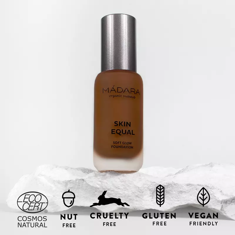 Denne foundation tilfører huden en smuk glød, ligesom den også ensarter hudtonen og giver en meget naturlig finish, som ikke giver indtryk af, at du har foundation på. Derudover indeholder MÁDARA SKIN EQUAL Foundation SPF 15 ligeledes plejende ingredienser og solfaktor 15, som hjælper med at holde huden fugtet, samt beskytter mod UV-stråler og miljøpåvirkninger.
