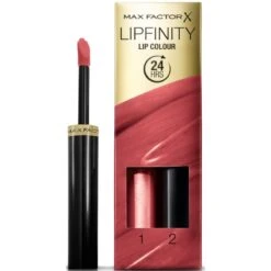 Max Factor Lipfinity Lip Colour 24 Hrs Cool er et genialt 2 trins system, der giver dig smukke og forførende læber, der holder i op til 24 timer. Sættet indeholder en lipgloss samt en fugtgivende top-coat. Du kan vælge imellem et væld af smukke farver, så hvad enten du er til et naturligt look eller ønsker mere fokus på dine læber, er der en farve der passer til netop dig.