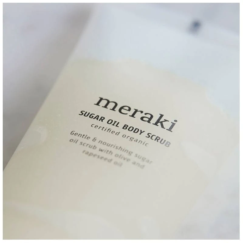 Meraki Sugar Oil Body Scrub er en rig olie bodyscrub, der blandt andet indeholder oliven- og rapsolie, der bliver til den fineste og silkebløde skum, når du massérer den rundt på kroppen. De søde sukkerkorn eskfolierer huden til perfektion, fjerner døde hudceller og urenheder, og efterlader dig med en skøn, blød og velplejet hud. Meraki Sugar Oil Body Scrub passer til alle hudtyper, og har til formål at få huden til at genvinde sin naturlige glød, samt forbereder huden på dine pleje produkter efterfølgende. En lækker, afslappende og effektiv scrub, der gør dine badeoplevelser til noget helt særligt.
