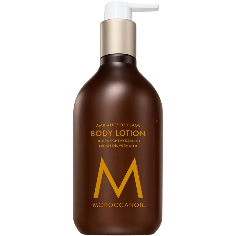 Moroccanoil Body Lotion – Ambiance De Plage er en ultralet bodylotion, som kan bruges til alle hudtyper. Den er beriget med olier fra argan, kamelia og kæmpenatlys, som tilfører huden masser fugt og næring, mens aloe vera bladekstrakt bidrager med beroligende egenskaber.