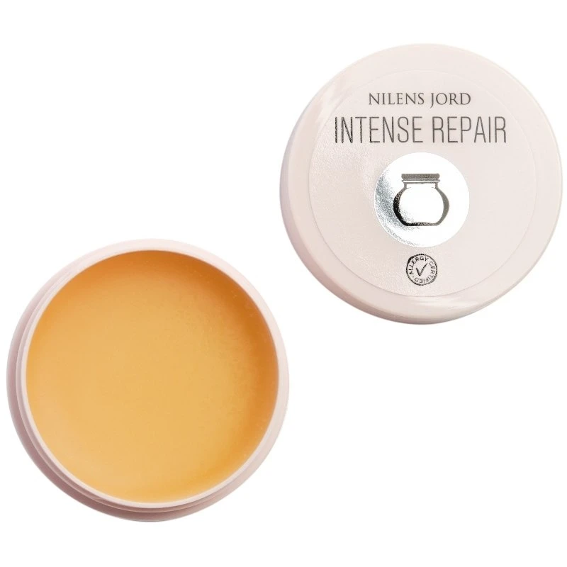 Nilens Jord Intense Repair – No. 477 er et multifunktionelt produkt, som hurtigt bliver et absolut must-have. Denne salve virker ekstra plejende og fugtgivende, og er super god at bruge på områder, som kræver ekstra opmærksomhed. Det kan f.eks. være områder som tørre, sprukne læber, tørre albuer, neglebånd eller andre områder, som trænger til ekstra fugt. Den er beriget med mandelolie og jojobaolie, som er med et naturlig indhold af vitamin A, B og E, og disse virker plejende og blødgørende. Nilens Jord Intense Repair – No. 477 er vandafvisende.