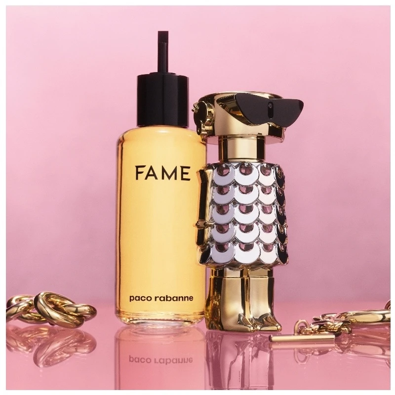 Paco Rabanne Fame EDP Refill er en refill til din Paco Rabanne Fame EDP 80 ml. Dette vil sige at du ikke kan bruge den for sig selv, men i stedet kan genbruge din flakon, og få en god besparelse på din duft.