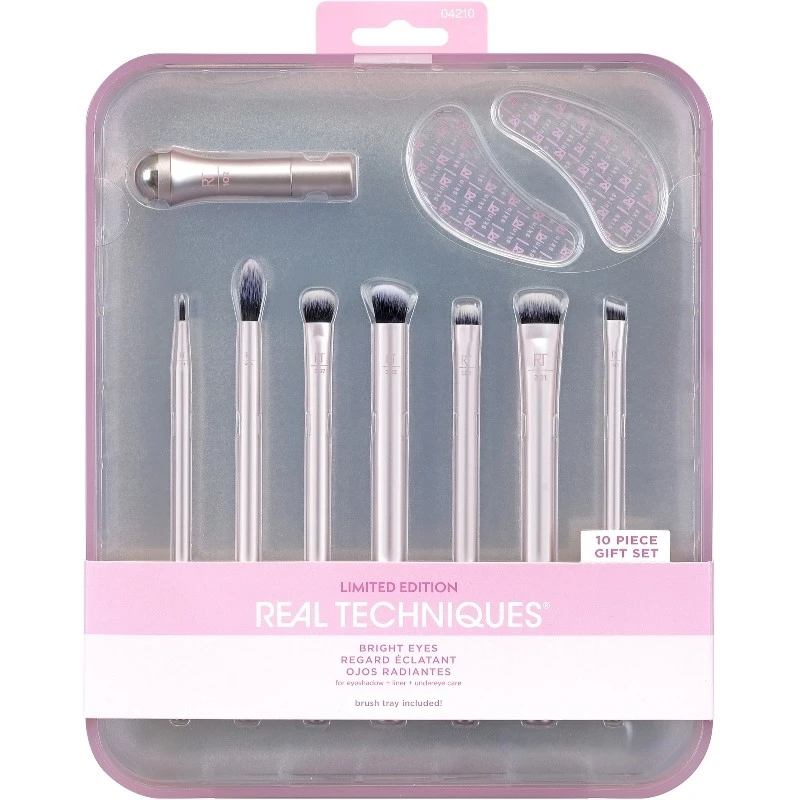 Real Techniques Bright Eyes Real Techniques Everyday Eye Essentials er et lækkert sæt, med 7 uundværlige værktøjer til at skabe smukke og uimodståelige øjne. Sættet indeholder forskellige børster, så det er kun fantasien der sætter grænser for, hvilket look du vil skabe.