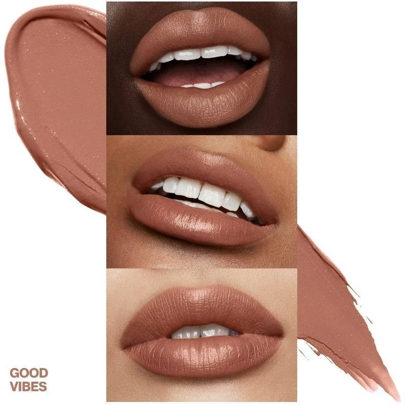 Smashbox Be Legendary Prime & Plush Lipstick – Good Vibes er en virkelig lækker, cremet læbestift. Den er beriget med Primer Oil Complex, som gør, at den glider ubesværet på læberne. Den giver en masse fugt og har en udglattende virkning på læberne. De fugtboostende ceramider i primer komplekset giver smidige læber, og betyder at den føles super behagelig.