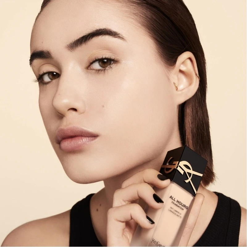 YSL All Hours Foundation SPF 39 giver en fuld dækning, som skjuler alt lige fra pigmentpletter til tatoveringer, og leverer en fejlfri, ensartet og frisk teint, med en naturlig, mat finish.